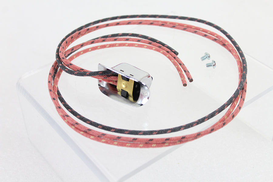 2020 New Production replica handlebar hi-lo two position dimmer switch features chrome housing with three cloth covered wires. All components are interchangeable with OEM parts. This is a V-Twin exclusive!