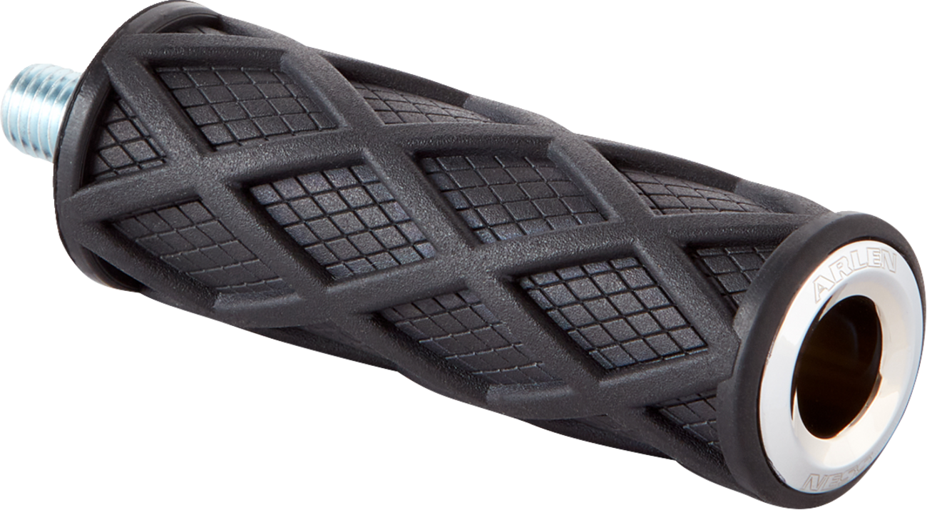 - Diamond rubber pegs feature a diamond rubber pattern with integrated knurling inside each diamond pocket for excellent foot traction