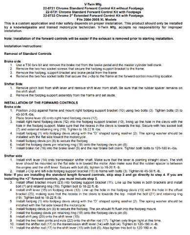 Vtwin Chrome Forward Control Kit 2004-2005 Harley Davidson Sportster XL 1200 883
