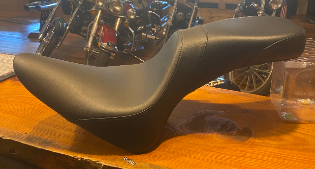 - Low profile in the driver's portion, this 2-up seat has a substantial pillion seat for the passenger