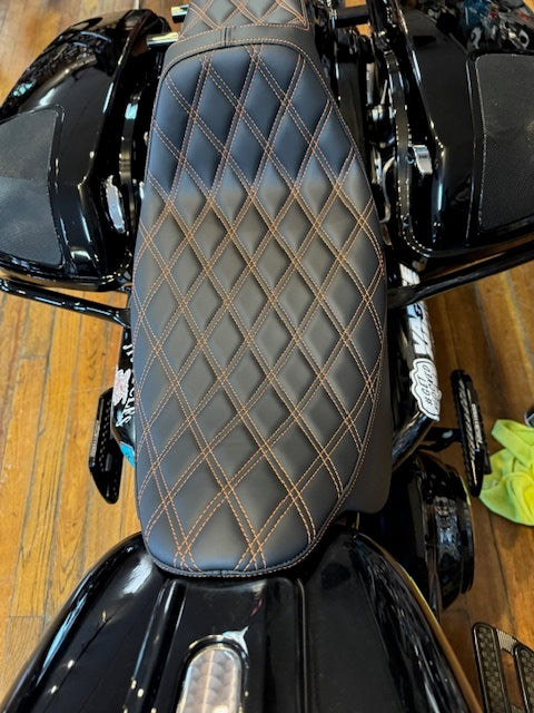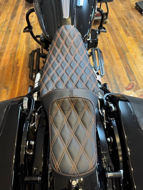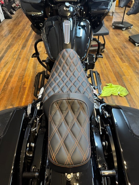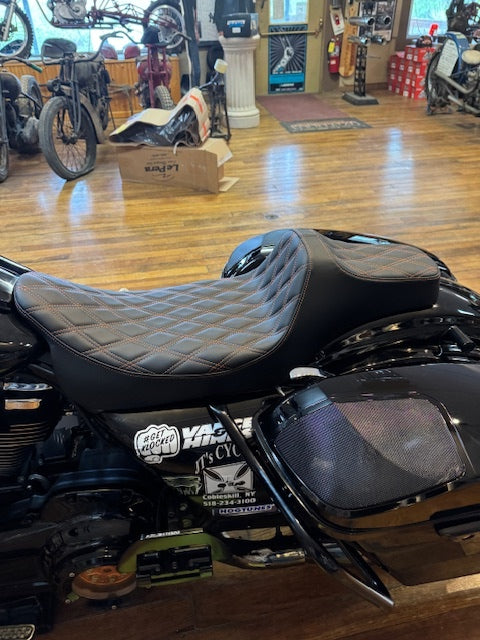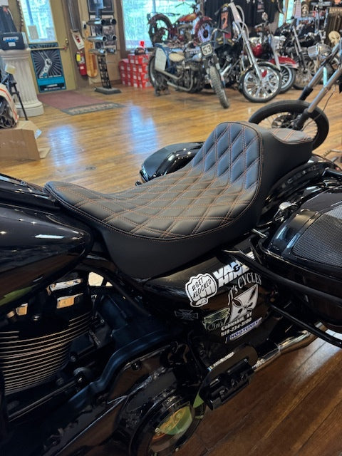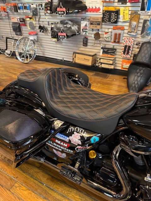 Drag Specialties Extended Reach Orange Stitch Seat fits 2008-2024 Harley Touring