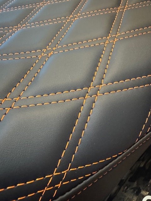 - THIS IS A CUSTOM SEAT ORDER WITH ORANGE STITCHING AND SOLAR REFLECTIVE LEATHER.