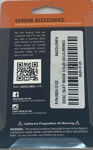 Saddlemen Gold 1/4"-20 Rear Motorcycle Seat to Fender Mounting Knob for Harley