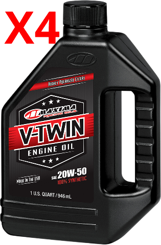 • Synthetic oil kits contain four quarts of V-Twin 100% synthetic 20W-50 engine oil, one quart of V-Twin Mineral 80W-90 Transmission oil, one quart of V-Twin Mineral Primary oil and chrome oil filter