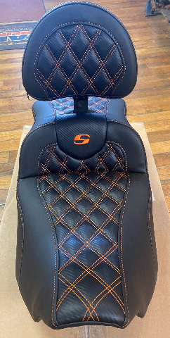 Saddlemen Roadsofa Orange Lattice Extended Seat & Backrest 23-25 Harley Touring
