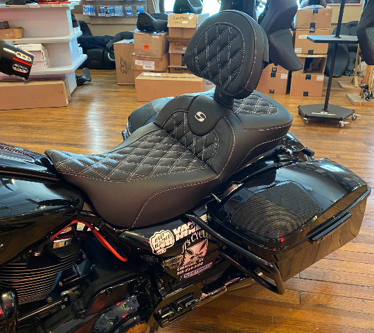 Saddlemen Roadsofa White Lattice Extended Seat w/ Backrest 08-24 Harley Touring