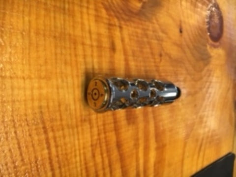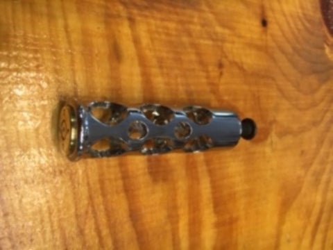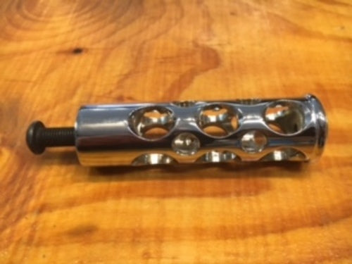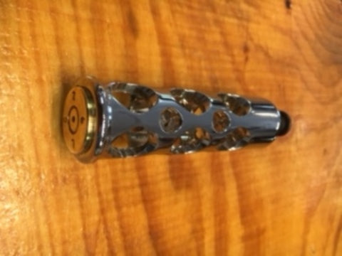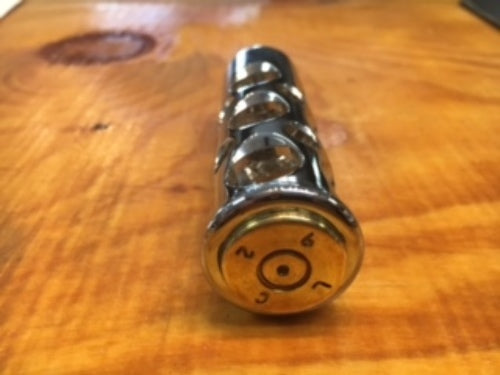 JT'S CUSTOM CHROME SHIFTER PEG WITH REAL ONCE FIRED .50 CALIBER POLISHED SHELL INSTALLED.